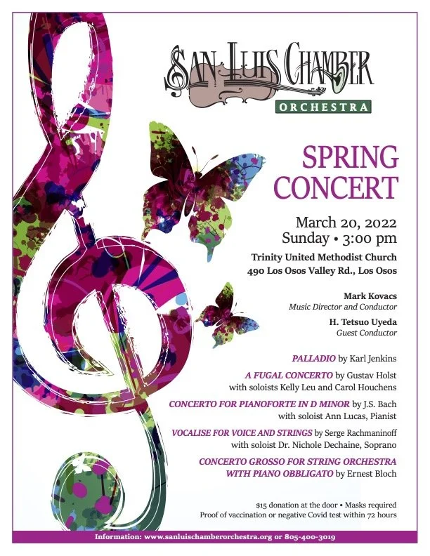 You can receive email updates by joining our e-mail list. Inquire at: slchamberorchestra@gmail.com